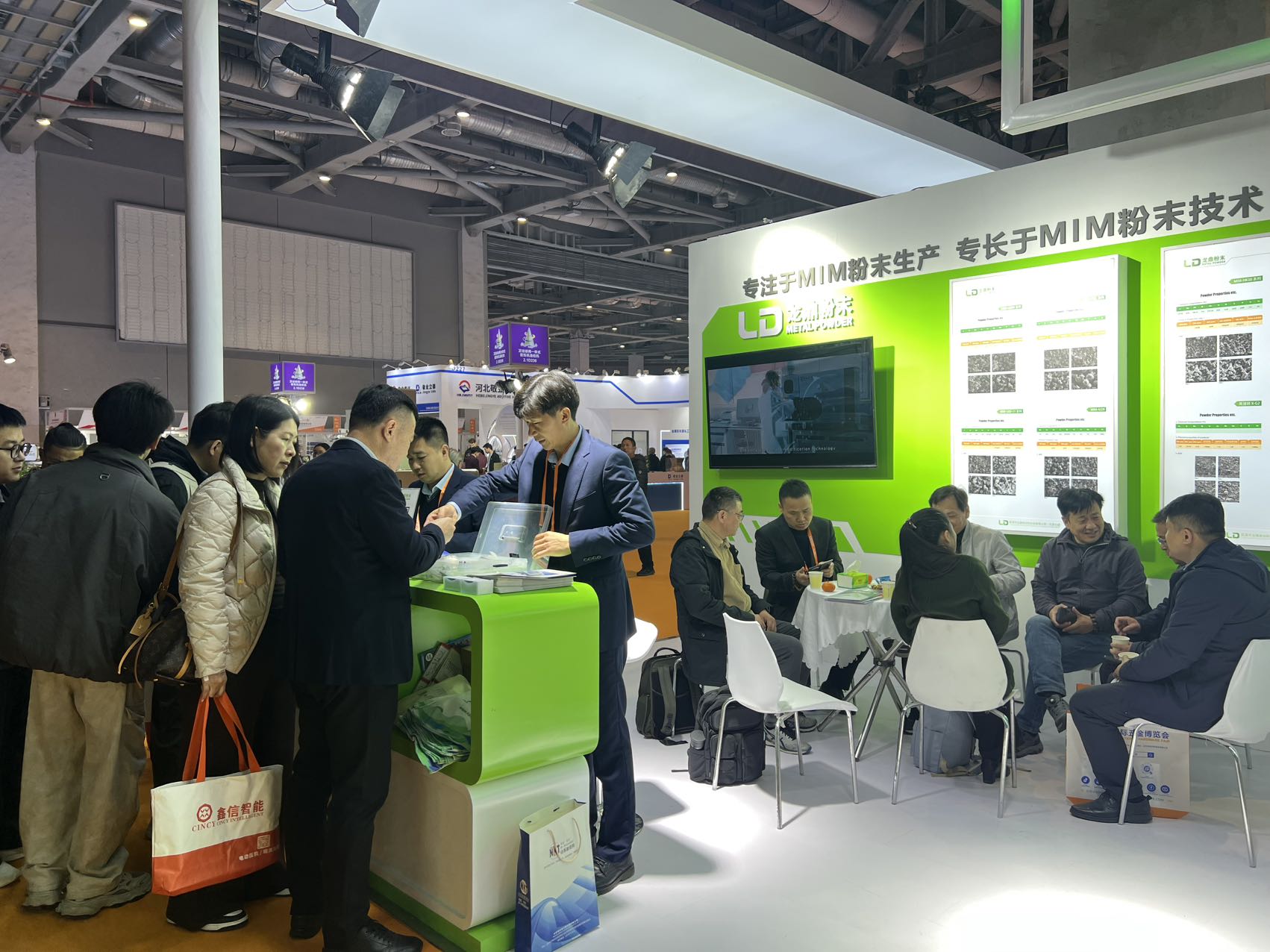 龍鼎粉末的展位憑借專業的技術展示與優質的產品,吸引了大量行業客戶、合作伙伴駐足咨詢,現場人氣持續高漲。